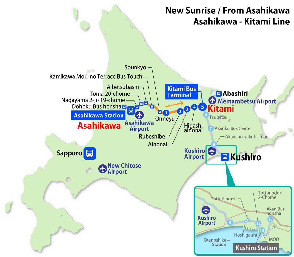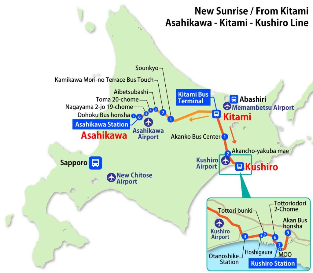 Operating Companies : Hokkaido Chuo Bus, Hokkaido Kitami Bus, Abashiri Bus
