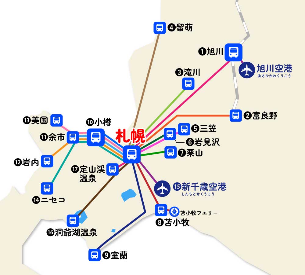 Operating Companies : Hokkaido Chuo Bus, JR Hokkaido Bus, Dohoku Bus, Hokumon Bus