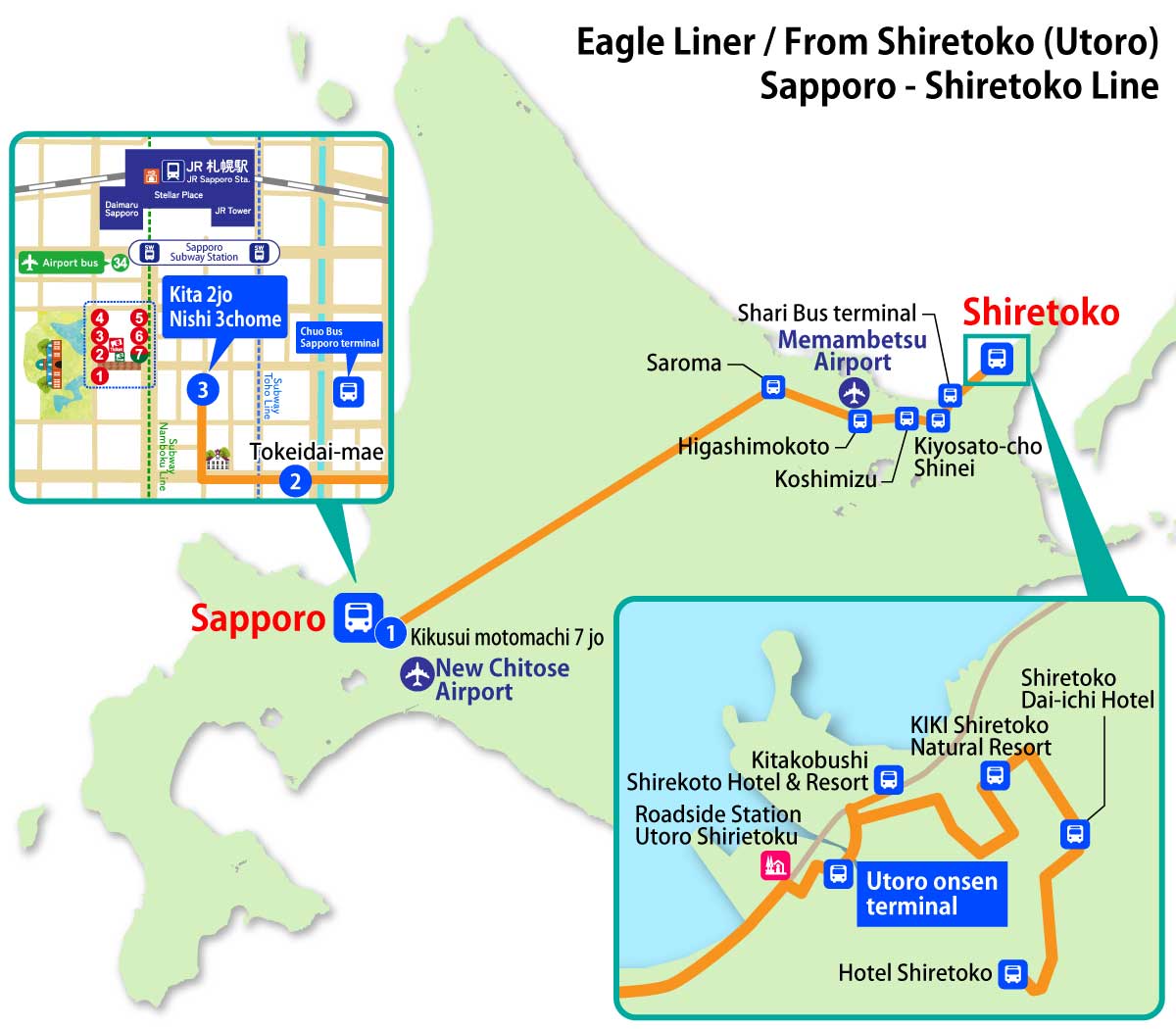 Sapporo ⇔ Shiretoko Highway Bus / Eagle Liner Sapporo Shiretoko Line