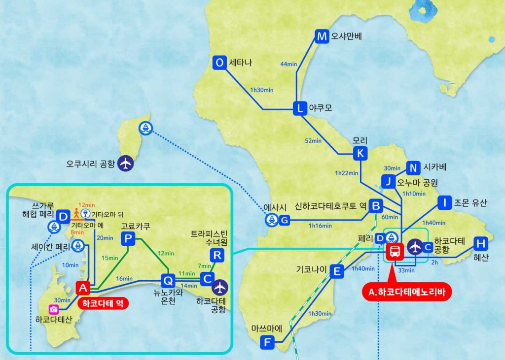 (에사시 버스터미널-우바가미초 훼리마에-나카우타초-앗사부-신하코다테호쿠토역)