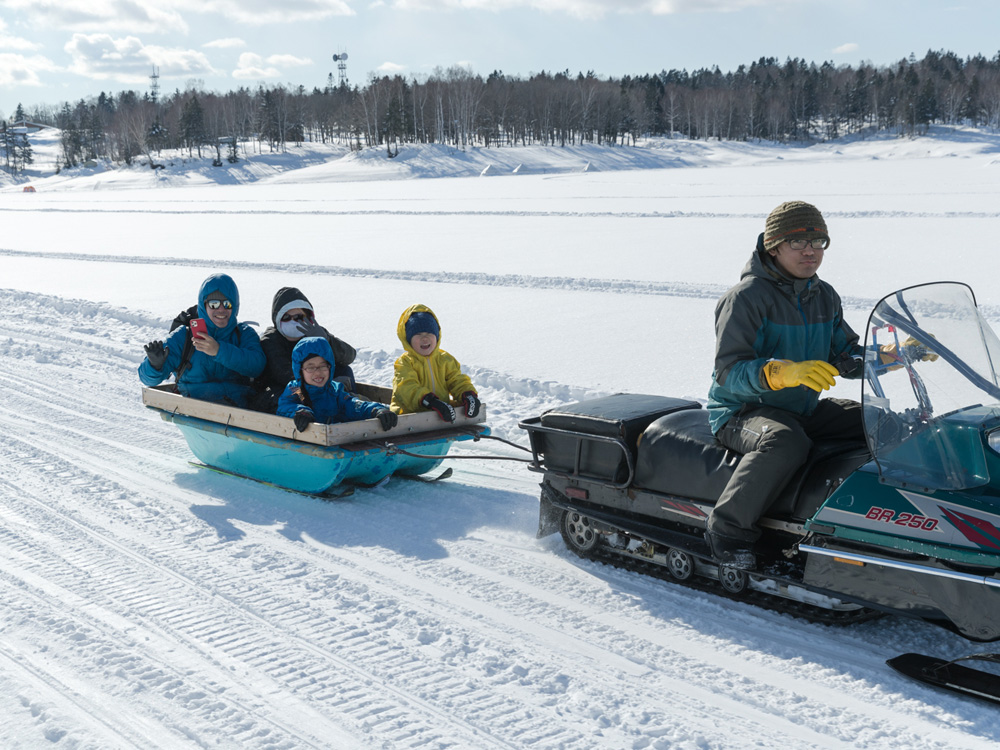 그럴 때에는 호수 위 각 구역에 있는 포인트에 설치된 스테이션까지 스노모빌로 송영 셔틀 서비스가 있으니 많은 이용을 바랍니다.