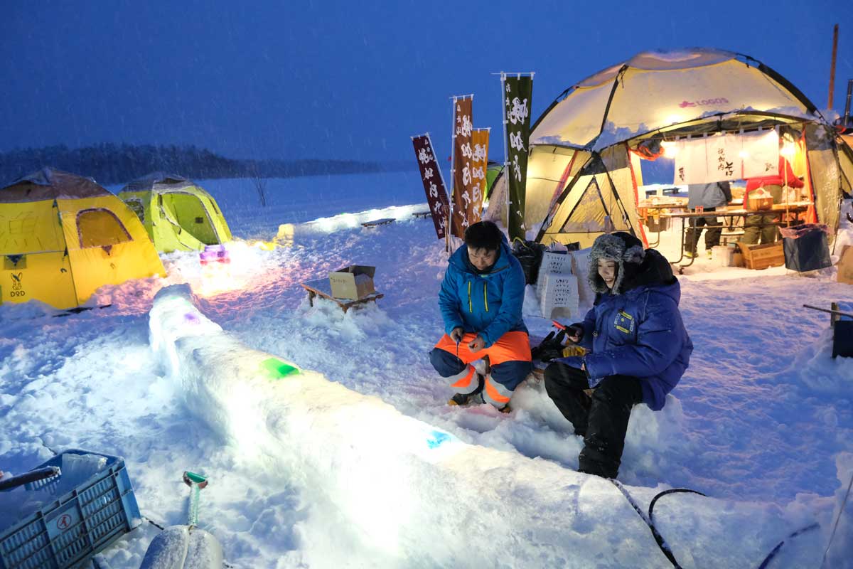 슈마리나이호는 홋카이도 중 유수의 폭설지역입니다. 결빙된 호수 위에도 두껍게 눈이 쌓이기 때문에 걸어서 이동하기가 힘듭니다.