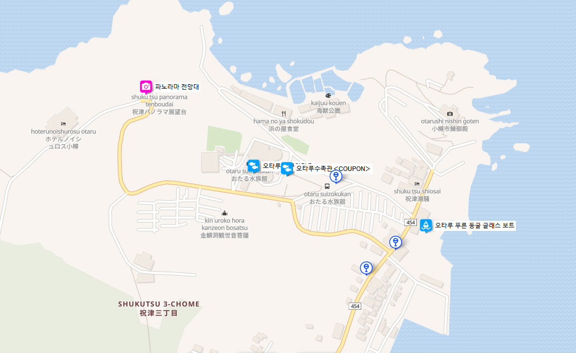 JR오타루역 하차 → 도보 10분 → 제3호부두 → 해상관광선 20분 → 슈쿠스 항 → 도보 10분