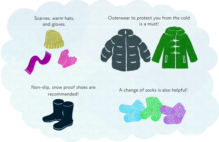 In Hokkaido, the first snow falls in early November, and the average temperature drops below freezing in December. Snowstorms sometimes disrupt the transportation system. In winter, the temperature indoors is high and the difference in temperature between inside and outside is over 30 degrees Celsius, so it is necessary to wear layers of clothing that can be easily removed. By the second half of March, the accumulated snow begins to melt and the sounds of spring can be heard.